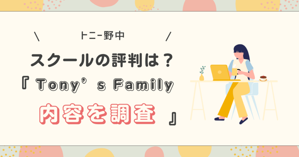 トニー野中のスクール評判は?Tony’s Familyの内容を調査