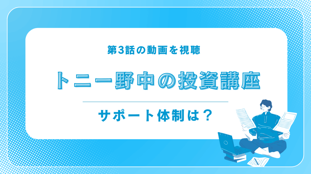 【第3話の動画】を視聴。トニー野中さんの投資講座。サポート体制はいかに?